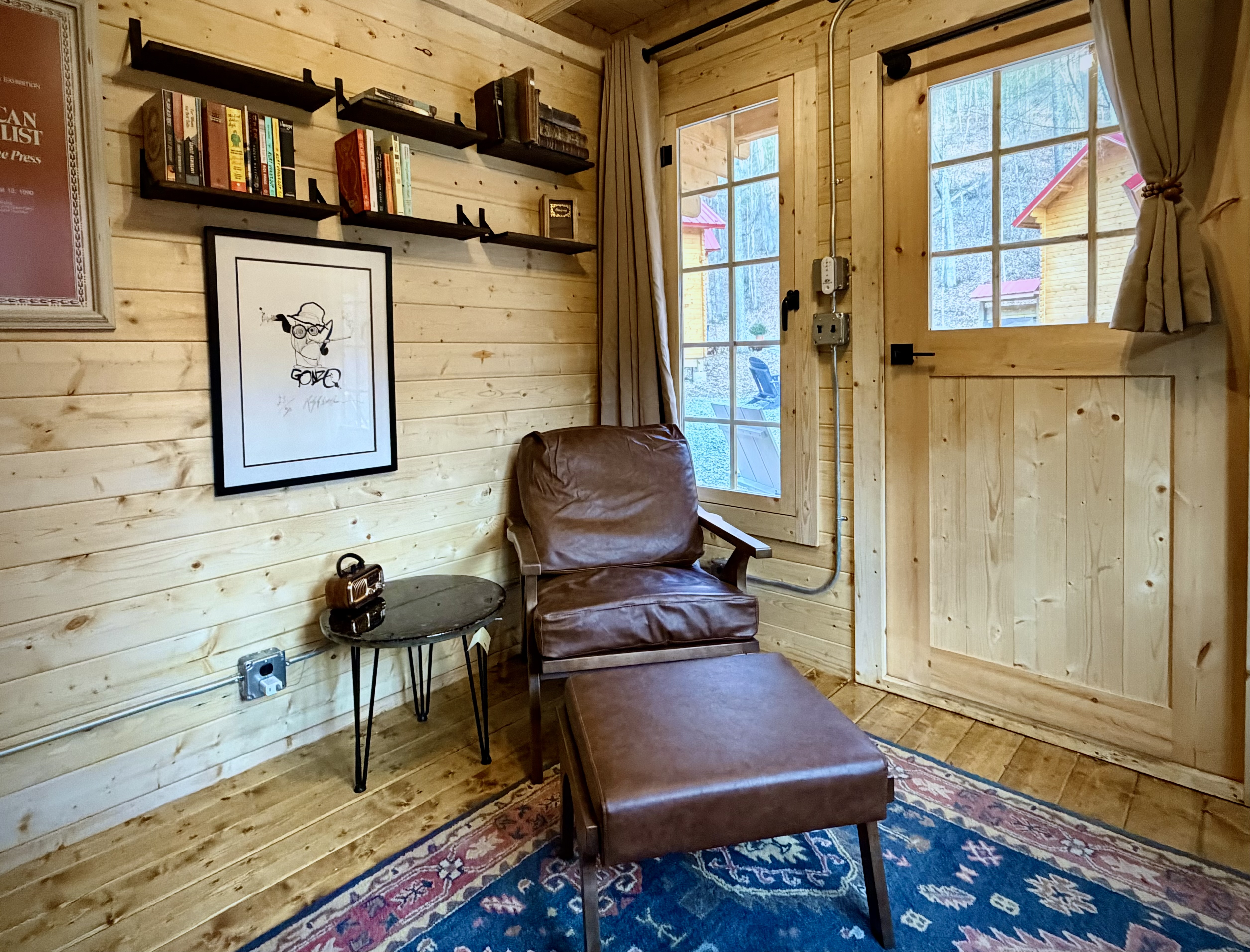 "It was the best of times, it was the worst of times." Clearly, Dickens did not coin that line while staying in this cabin, because there is no conjuring of "worst times" here. Surrounded by vintage typewriters and antique furnishings, you may well pen your own masterpiece while staying in this little cabin curated for book lovers and literary dibble-dabblers. The upstairs loft of the Writers' cabin features a queen-size bed perfect for snuggling into on cool Highland nights. Keep the amber glow of your stained-glass bedside lamp beaming while you cozy up with a novel; switch off when you're ready to open your loft window to peek at the stars and let the mountain air fill you up with ideas. Our main house also has an amazing collection of books in our library, complete with a quiet and comfy atmosphere for you to inspire your next bestseller.