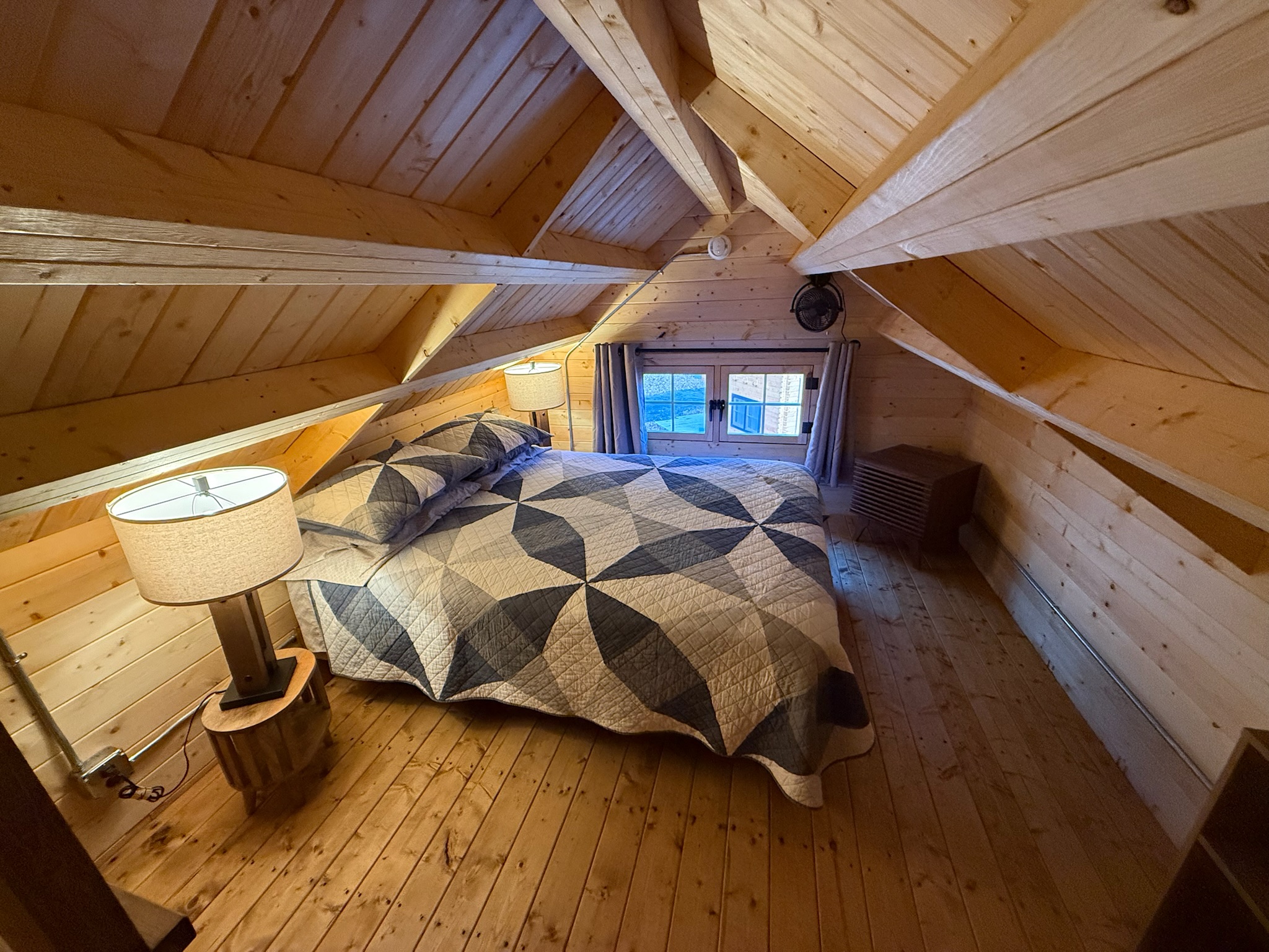 This cabin is a two-story tiny cabin with a ladder to the upper floor. If you are not comfortable climbing a ladder, please consider our flyfishing or nature cabin, both of which are single story.