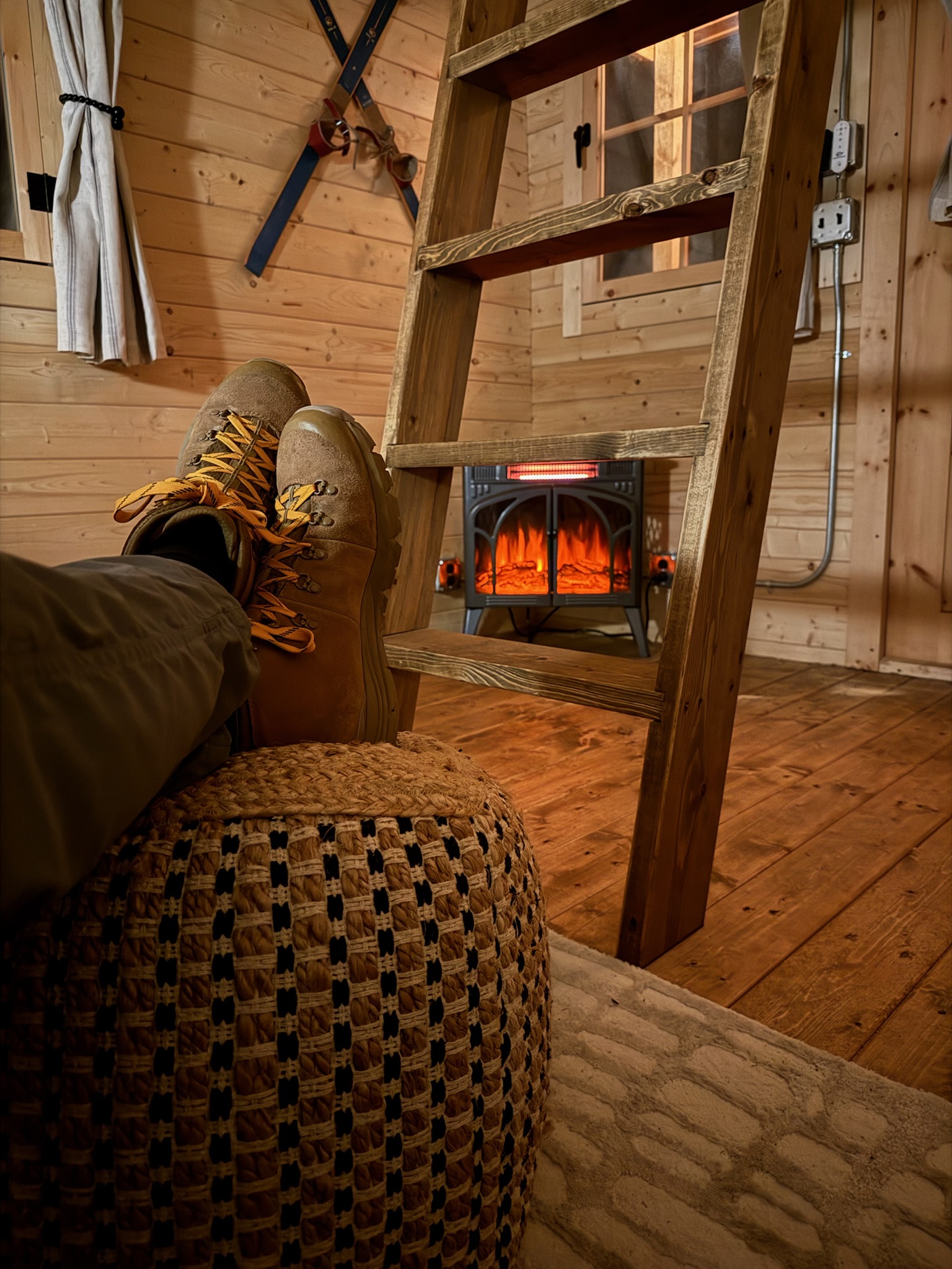 Cabins have electricity and excellent infrared heaters to keep you toasty on cold nights. Starlink wifi is available at the cabins.